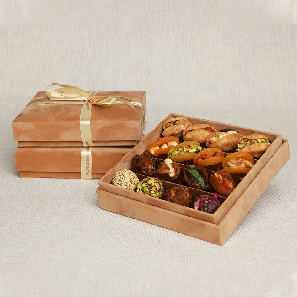 Discover the perfect blend of tradition, elegance, and natural goodness with our Premium Dates Gift Collection. Handpicked for their exceptional quality, our dates are beautifully presented in luxurious packaging, making them ideal for every special occasion. Whether you’re celebrating with loved ones, impressing clients, or simply enjoying a healthy indulgence, our premium dates are a symbol of heritage, hospitality, and refined taste. Share the gift of authenticity and timeless flavour with Almaeeni Group’s exclusive date gift boxes.